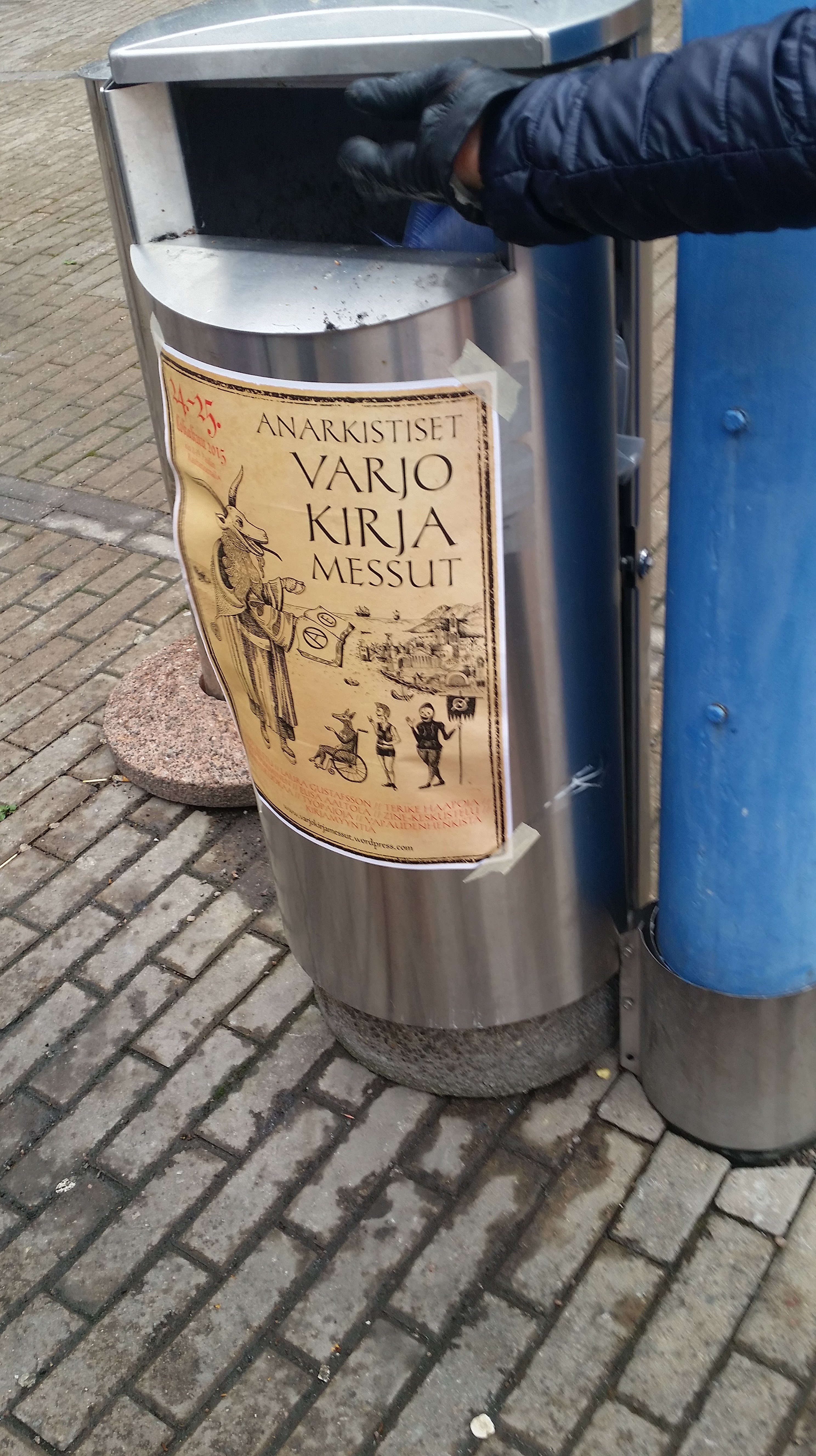 Kävin tekemässä muutamat ostokset idiootti-kustantamolta, jonka jälkeen suuntasin tarkastamaan Rauhanasemalla sijaitseneet anarkistiset ilmaiset Varjokirjamessut. Varjokirjamessuilla oli kuhinaa, vaikka tila olikin tiivis. Esillä oli muun muassa aseistakieltäytyjiä, zinejä, oikeutta eläimille jne.
